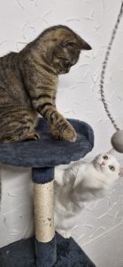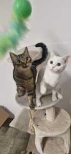 Für die beiden suchen wir ein gemeinsames Zuhause ohne kleine Kinder, da sie ein eher ruhigeres Umfeld bevorzugen. Hunde lernen sie momentan kennen – eine vorsichtige Annäherung ist denkbar, wenn der Hund katzenverträglich ist.